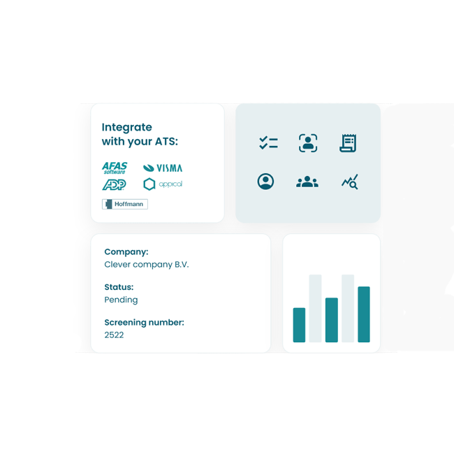 Wij maken het makkelijk om employment screening toe te voegen aan jouw bestaande workflow. Zodoende wordt alle relevante data bewaard op één centrale plek en kan je het wervingsproces stroomlijnen.