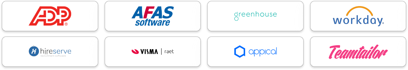 We partner with leading HR and recruitment system providers and offer API integrations for organisations with more tailored requirements. If you cannot find your system listed below, please contact us and we will help you find the right integration solution.